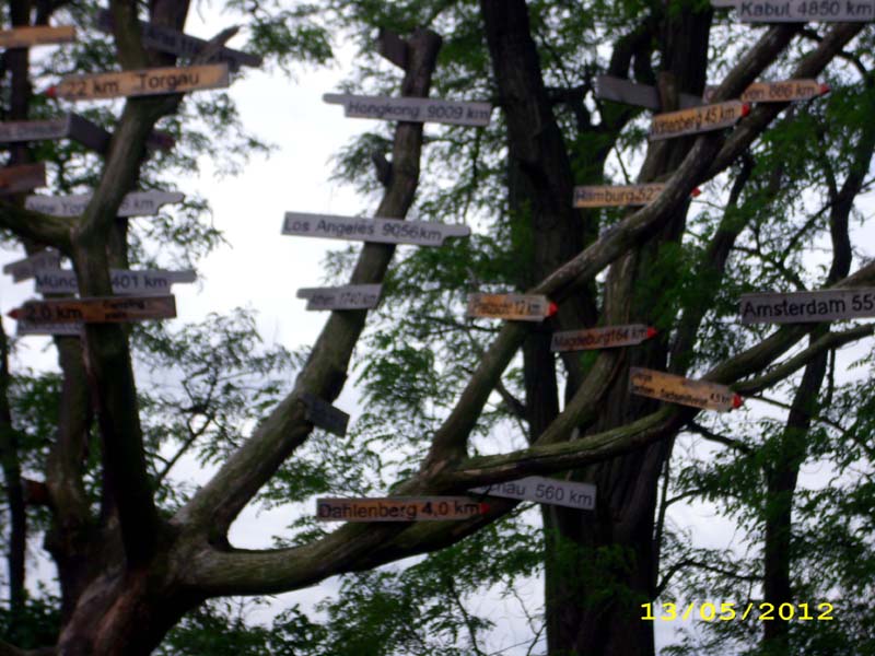 Unterwegs begegnen wir einem interessanten Wegweiserbaum.