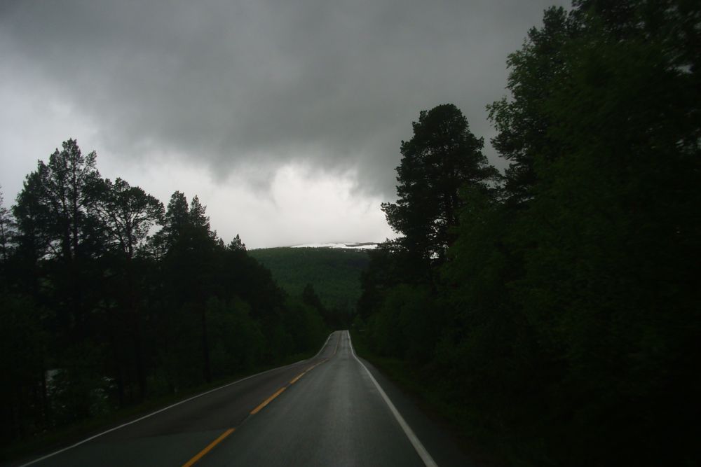 In Mo i Rana tanken wir für 830 NKr, die Touristinfo ins früh kurz nach 9 Uhr noch geschlossen, Wlan gibt es keins - wir entfliehen über die E6 und E12 dem Schmuddelwetter und landen 10.30 Uhr im trockenen Schweden.