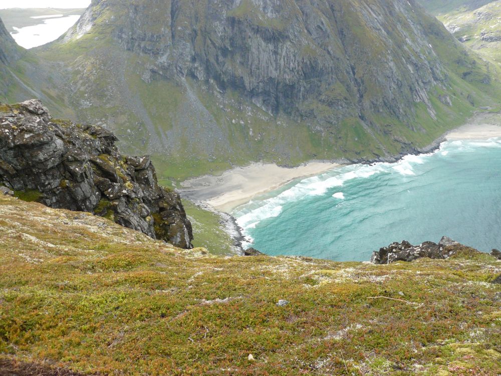 Beim Abstieg finden wir auch die besagte Kvalvika-Bucht. Diese ist auch von der Ryten-Seite aus erreichbar. Aber wir müssten auf der anderen Seite wieder nach oben klettern...also genießen wir nur den Blick und laufen wieder gen Auto, welches wir kurz nach 13 Uhr wieder erreichen.