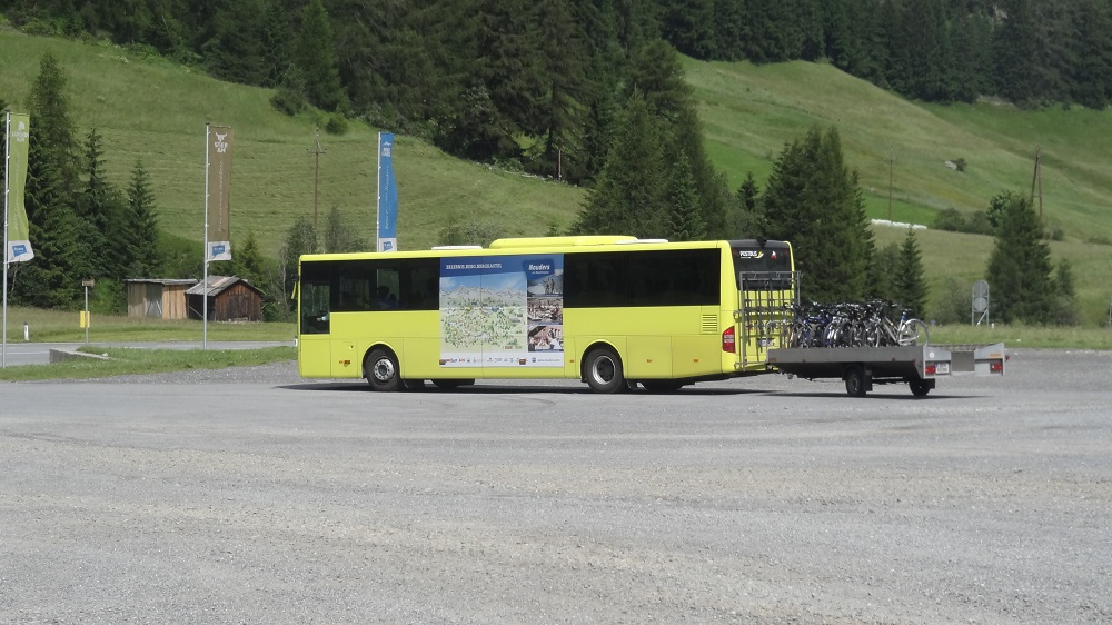 Weiter fahren wir auf der Reschenstraße in Richtung Deutschland bis nach Nauders. Dort fahren wir mit der Bergkastelbahn hinauf nach Bergkastel auf 2200 Hm. Der Erlebnisberg macht seinem Namen alle Ehre, es wimmelt von Familien mit und ohne Kindern/Hunden, sodass wir nach einem kurzen Aufenthalt wieder hinab ins Tal laufen.