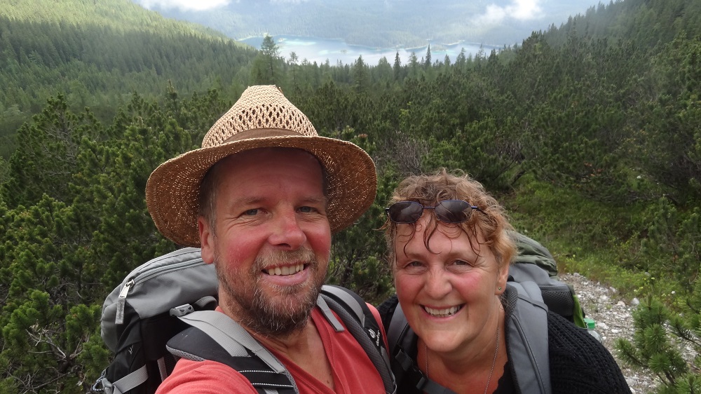 8.30 Uhr laufen wir vom großen Parkplatz an der Zugspitzseilbahn am Eibsee los zum Riffelriss. Die Tour laufen wir eigentlich jedesmal, wenn wir in Grainau sind - und sie ist jedesmal sehr anstrengend. Zumindest für mich, da es zu Beginn sehr steil in die Höhe geht! Wir laufen diesesmal direkt über die Wiese nach oben, der Serpentinenweg durch den Wald ist mit Geröllsteinen aufgeschüttet und läuft sich nicht mehr so gut wie noch vor Jahren auf Waldwegen. Nach knapp 4 km und knapp 2 Stunden sind wir erschöpft aber glücklich am Haltepunkt angekommen und warten auf die Zugspitzbahn (nur zum gucken!). Eine kurze Rast und es geht wieder bergab. Aber auch das ist grenzwertig, weil doch ziemlich steil. Wir sind zwar nicht die einzigen, aber alles in allem hält sich der Andrang von Touris auf dieser Strecke in Grenzen. Kurz vor Ende des Wiesestückes fragt uns ein Mountainbiker, wie die Strecke so ist - und erkennt, dass er wohl doch absteigen und laufen muss...