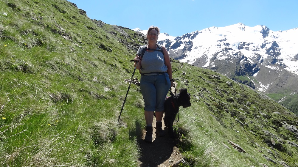 Im Wanderführer habe ich gelesen, dass man von der Hütte noch in ca einer Stunde zu einem 3000-er Berg „im hinteren Eis“ laufen kann. Das reizt mich, zumal geschrieben steht, dass dieser Weg zwar nicht gut ausgeschildert, aber leicht erkennbar und auch sonst nicht kompliziert zu gehen ist.
