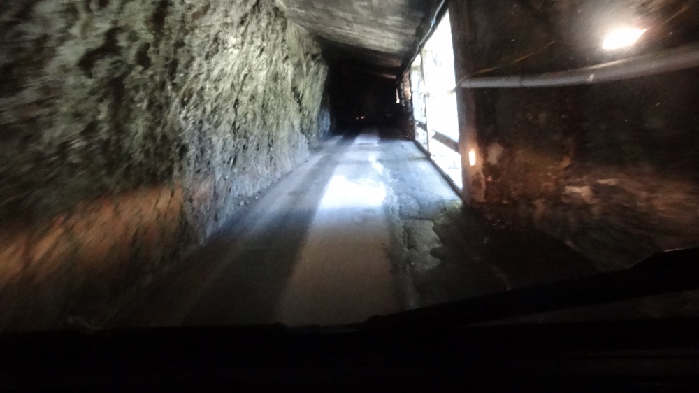 Am Anfang des Weges nach Saumnaun finden wir ein Schild, welches besagt, dass Fahrzeuge nicht höher als 3 m und nicht breiter als 2,30 m sein sollten. Die Höhe ist kein Problem, bei der Breite hatten wir uns etwas verschätzt...so dass wir einige der sehr abenteuerlichen Tunnels nur mit viel Mühe durchqueren konnten.